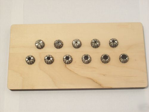 WE ARE OFFERING A HIGH QUALITY 11 PIECE SET OF NEW ER16 COLLETS,WE ALSO HAVE ER32 COLLETS. WE ARE ALSO INCLUDING A CUSTOM MADE COLLET TRAY AS SHOWN IN PICTURES. YOU RECEIVE THE FOLLOWING 11 SIZE COLLETS. 1/16, 3/32, 1/8. 5/32, 3/16, 7/32, 1/4, 9/32, 5/16, 11/32, 3/8. WE ALSO HAVE NEW CAT40 ER16 COLLET CHUCKS LISTED. IF YOU DON'T FIND WHAT YOU NEED, EMAIL OR CALL US AND WE WILL LIST IF YOU HAVE ANY QUESTIONS EMAIL OR CALL US AT (***)-672-9876. Be sure to add me to your favorites list! (We do not proofread any ads submitted by members) |