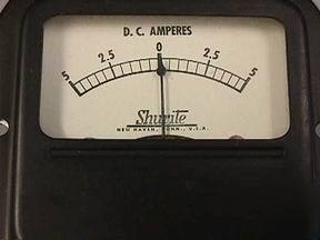 1 VINTAGE SHURITE METER 0-50H DC VOLTS MODEL 950 - This Model 950 is a black metal cased meter, 2 5/32" H x 2 5/8" W, with 2 vertical mounting threaded studs and a back bracket for panel installation. Meter face left to right is 5, 2.5 0, 2.5, 5. In the original box, these are new-old stock that include spec sheets and hardware. Please see pictures. Reference our part # SL670.