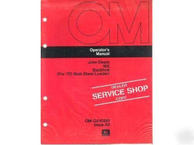 John Deere 165 Backhoe for 170 Loader Operators Manual 165 Backhoe (for 170 Skid-Steer Loader) This manual is not dated. It is in new condition and is still in it's original plastic packaging. (We do not proofread any ads submitted by members) |