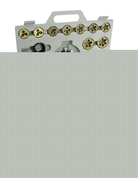 Supplying america with great tools. great prices Jumbo 45 pc Titanium Coated Tap & Die Set SAE w/ Case Click here to view more images Our 45 piece Tap and Die Set is made from a super tough heat treated Tungsten Alloy coated with Titanium. Our set is rust resistant and precision machined to exacting standards. The precision ground and poished surfaces facilitate chip removal Fine thread Tap and Die sizes: 1/4" NF28, 5/16" NF24, 3/8" NF24, 7/16" NF20, 1/2" NF20, 9/16" NF18, 5/8" NF18, 3/4" NF16, 7/8" NF14, 1" NF14 Coarse thread Tap and Die sizes: 1/4" NC 20, 5/16" NC18, 3/8" NC16, 7/16 NC14, 1/2" NC13, 9/16" NC12, 5/8" NC11, 3/4" NC10, 7/8" NC9, 1" NC8 * 1 die stock handle wrench wrench * 1 adjustable tap handle wrench If you have any technical questions about this product, we encourage you to give us a call. For more information call Alaska, Hawaii, Puerto Rico - $34.25 If you have a question regarding any of our products, you may call us toll-free within the United States at 1-(***)-535-8665 or at (***) 365-5184, if you are calling from abroad. Phone support will be available 9 a.m. - 5 p.m. Central Time, Monday through Friday (We do not proofread any ads submitted by members) |