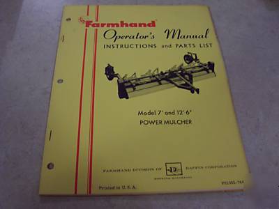 FARMHAND OPERATOR'S MANUAL #FS1055-764 FOR THE POWER MULCHER MODEL 7' AND MODEL 12' 6". FARMHAND MANUFACTURED IN HOPKINS, MINNESOTA. GOOD USED CONDITION WITH MINOR SOILING. The free listing tool. List your items fast and easy and manage your active items. (We do not proofread any ads submitted by members) |