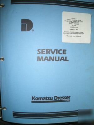 Service Manual by the Komatsu Dresser Company. For a number of years we've been equipment rental business and have many manuals on the shelf. This is like new, other than a little dusty. on front it says Models D-156, D-179, D-206, D-239, DT-239, D-246, D-268, D-310, D-358, DT-358 and DT-402 Diesel Engines form CGES-310-1 January 1982 Payline, Truck, Agricultural Equipment and OEM Appications. (Supersedes Form CGES-310) This is a very thorough reference book. (We do not proofread any ads submitted by members) |
